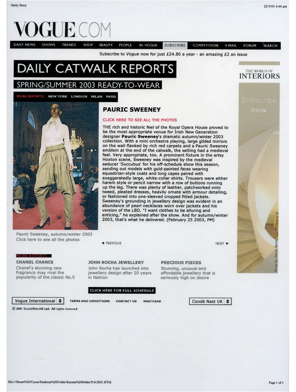 VOgue.com: Pauric Sweeney